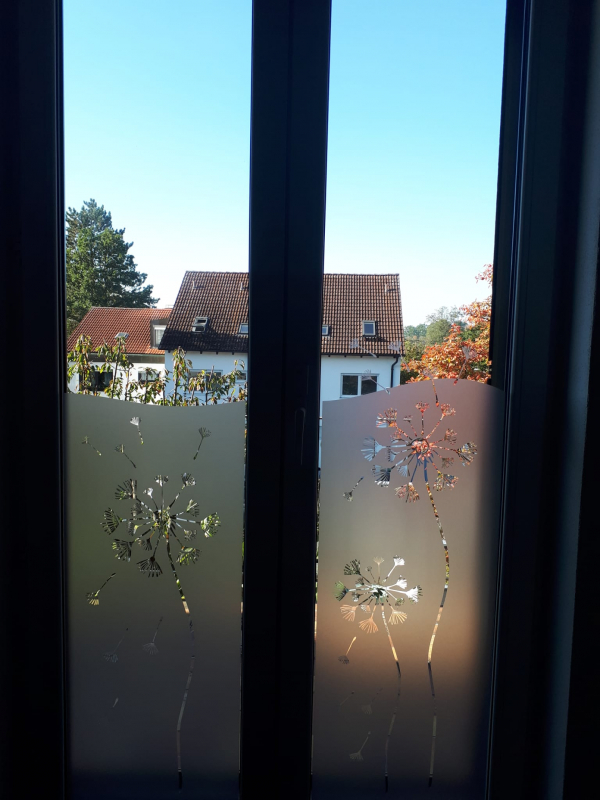 Von der Wirkung und der Anwendungsvielfalt können Sie sich ein Bild hier im Shop machen, denn den Produkten sind Fotos beigefügt, die aus Auftragsarbeiten stammen, aber auch von sehr zufriedenen Kunden gesendet wurden. Diese Folien erfreuen sich immer größerer Beliebtheit, da sie Gardinen überflüssig machen. Eine einmal montierte Folie bildet einen effektiven Sichtschutz mit einem schicken Design und ist absolut pflegeleicht ( nur feucht darüber wischen).