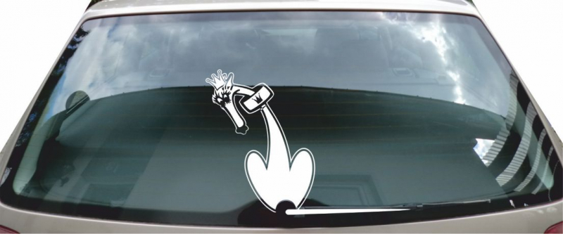 Auch in diesem Fall wird dieses possierliche Tierchen, auf unsere Autoheckscheibe geklebt. Wiederum wird der Schwanz auf den Heckscheibenwischer geklebt. Durch die Bewegung des Scheibenwischers erzeugt das Bild den Eindruck, als würde das Tier den Schwanz selbst bewegen.