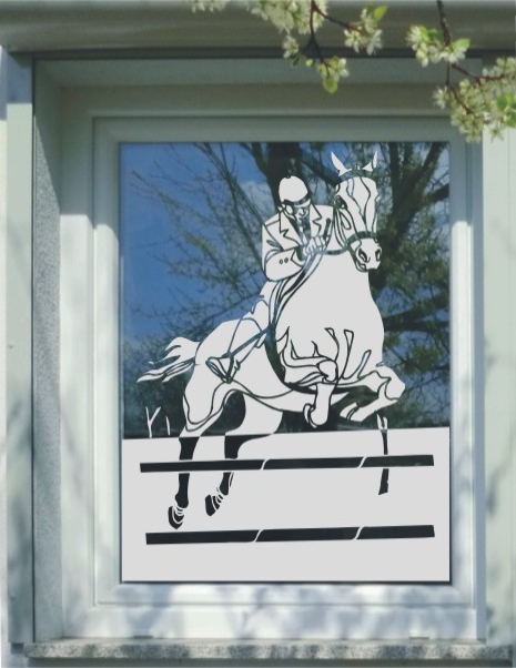 Ein beeindruckendes Bild, wie der Springreiter das Pferd über das Hindernis dirigiert. Bitte beachten sie auch die unterschiedliche Darstellung der Elemente.
